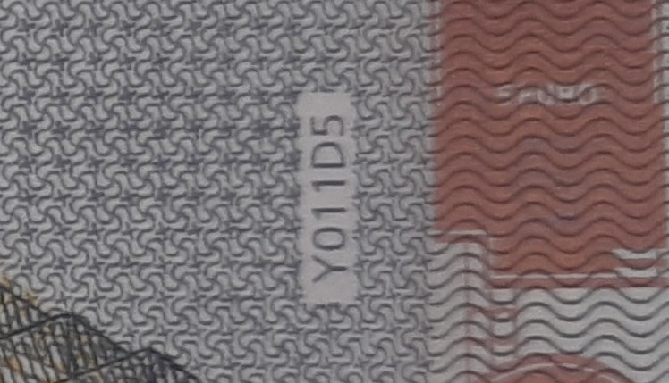 As a reminder, the complete printer code, as for all EUROPE type notes, is in the top right corner of the front of the note